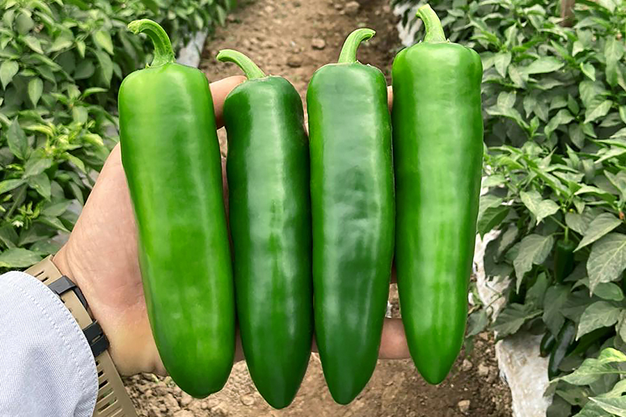 Fruit are ½” wide and 2 - 3” long. Medium walls and shaped similar to Jalapeño and is the pepper of choice in Salsa Verde and other southwestern relishes.